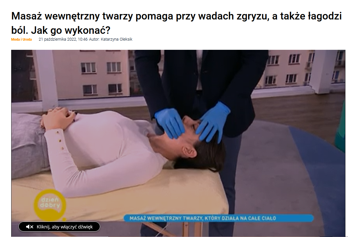 Leczenie dolegliwości bólowych w stawach skroniowo-żuchwowych, zablokowanie krążka stawowego, przygotowanie do leczenia ortodontycznego, wspomaganie pracy logopedy, przygotowanie pacjentów przed i prowadzenie pacjentów po zabiegach ortognatycznych.